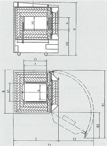 Please note that for this application, the inside dimensions t2, b2 and h2 apply Furnace with Digital Scale To establish weight loss of goods during heat treatment